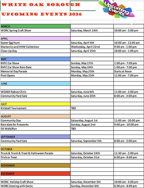 Come Join in the fun at White Oak Borough's Annual Community Events.