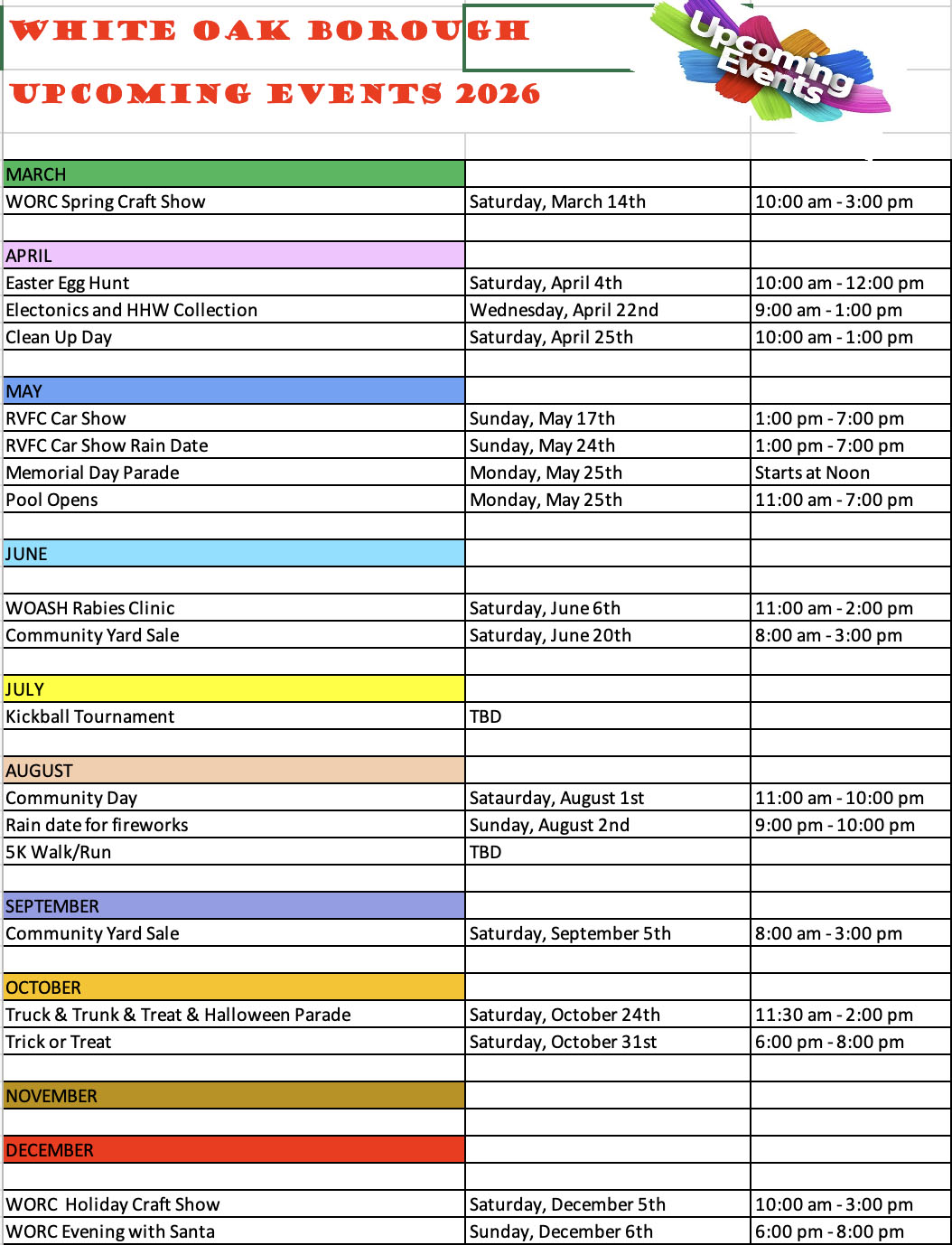 White Oak Borough Special Events