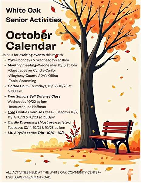 The Borough of White Oak hereby gives notice of the 2025 Meeting schedule. All meetings will be held at the White Oak Borough Municipal Building, 2280 Lincoln Way, White Oak, PA 15131. All meetings are open to the public except for Executive Sessions.